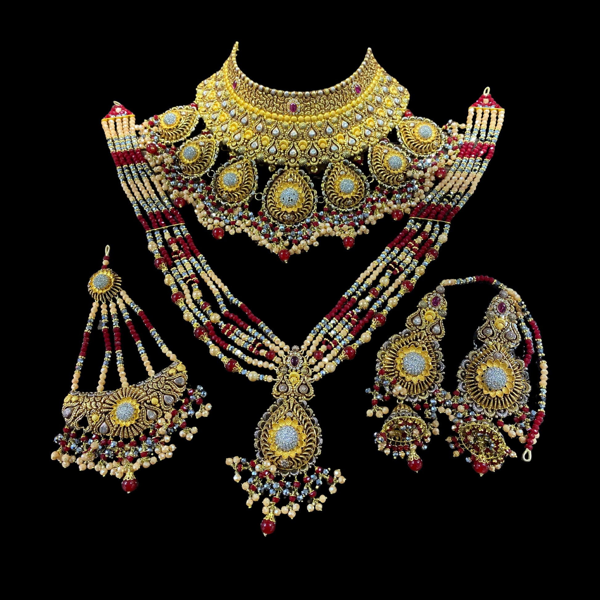 Elegant Gold-Plated Maroon Bridal Choker & Necklace Set