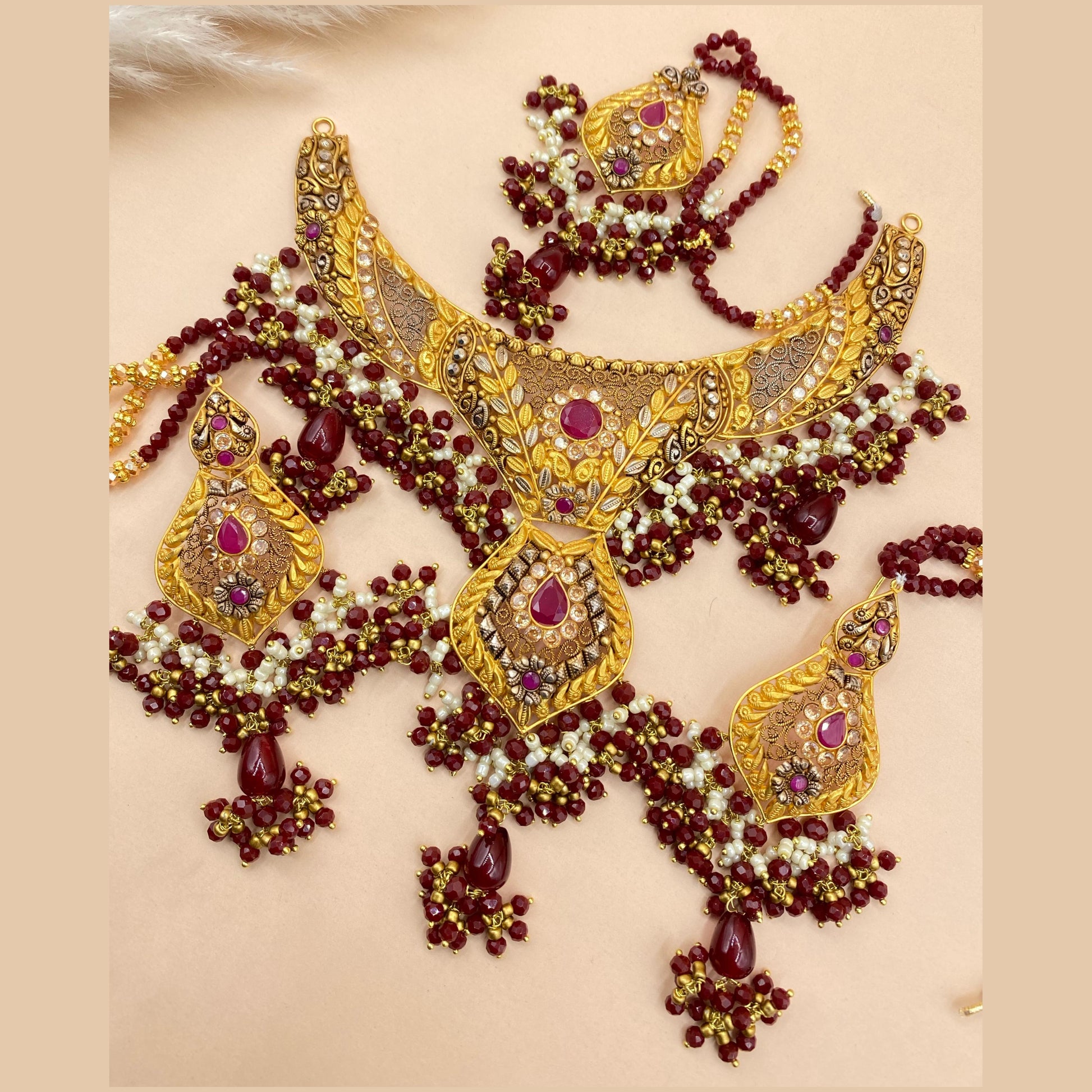 Majestic Maroon Gold-Plated Necklace Set with Intricate Detailing