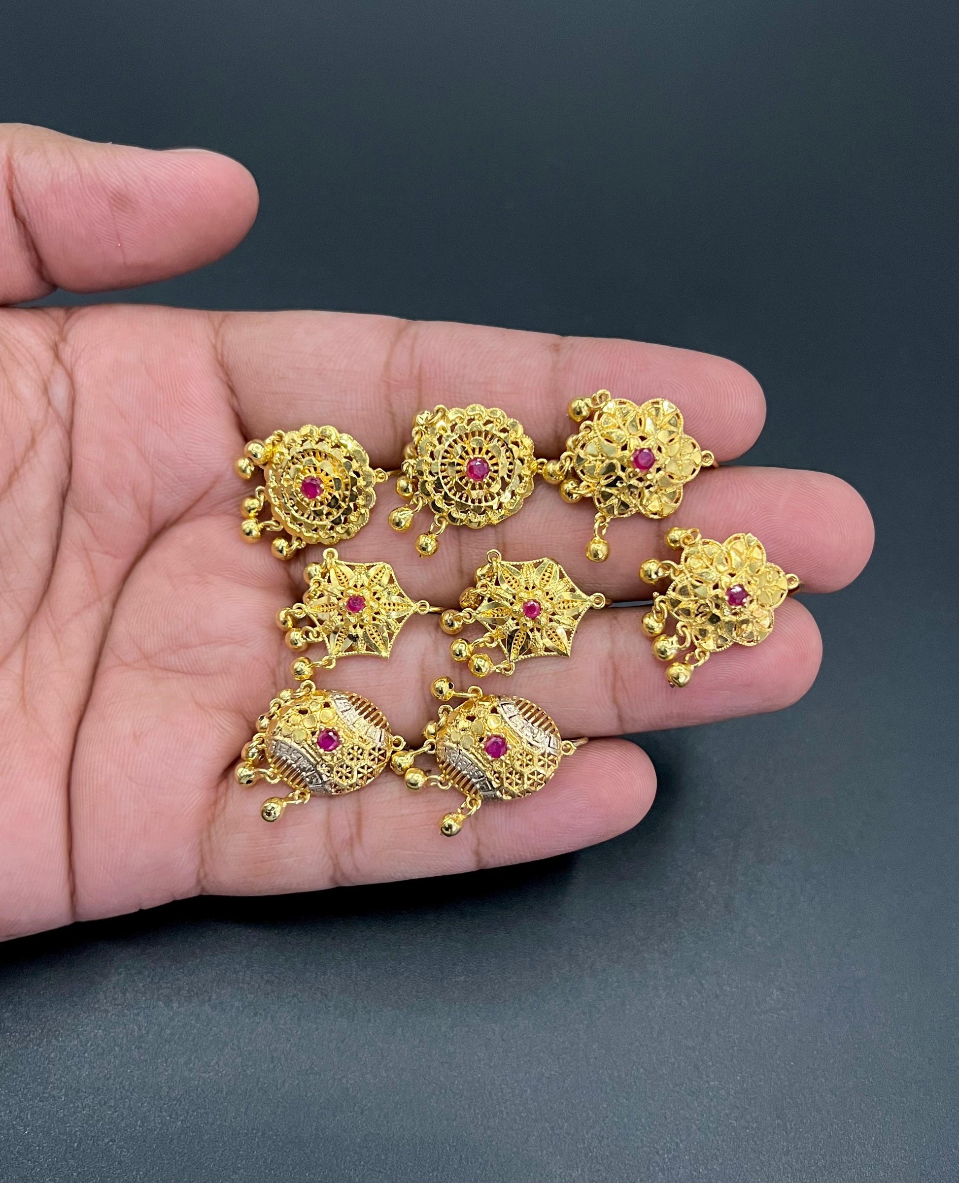 1 Pair Premium Gold-Plated Earrings with Maroon Zircon Detailing